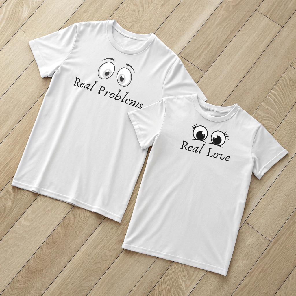 Wer kennt es nicht? Sie strahlt voller Liebe – und er erträgt die „Probleme“ mit einem Augenzwinkern. Das Partner-Shirt „Real Problems“ ist die humorvolle Ergänzung zum „Real Love“-Shirt und zeigt mit witzigen, leicht leidend wirkenden Cartoon-Augen über dem Schriftzug, wie perfekt Gegensätze zusammenpassen. Gemeinsam ergeben die beiden Shirts ein unschlagbares Duo, das den Alltag von Paaren auf charmante Weise widerspiegelt und genau das macht es so lustig.